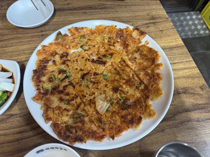 주문한 김치전이 나왔습니다.