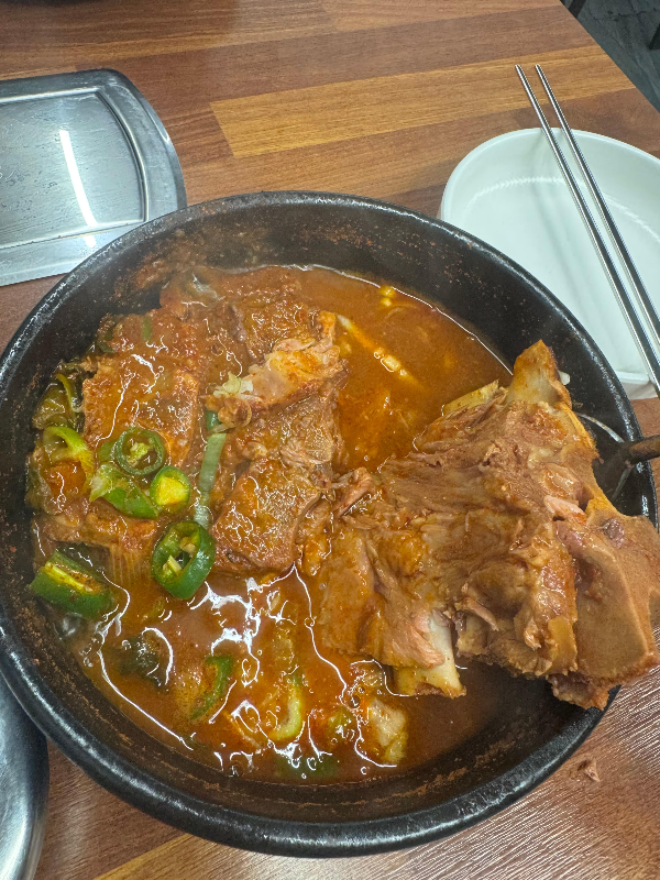 와이프와 저는 뼈해장국 두 그릇을 주문했습니다.