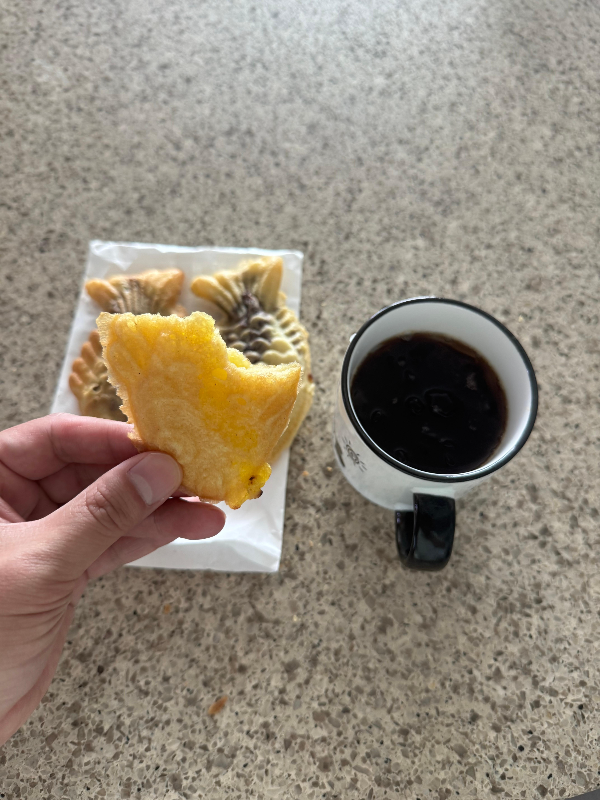 덜어놓은 커피와 슈크림 붕어빵을 같이 먹었습니다.