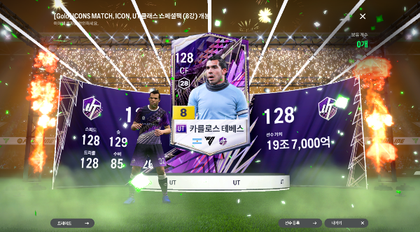 저는 아이콘 매치, 아이콘, UT 시즌 8강 박스 + 10조 bp를 2개를 받았습니다.