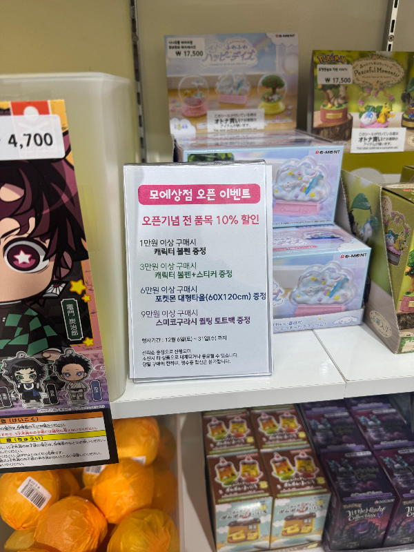 가챠 상품, 스티커, 열쇠고리 등 다양한 제품이 있었습니다.