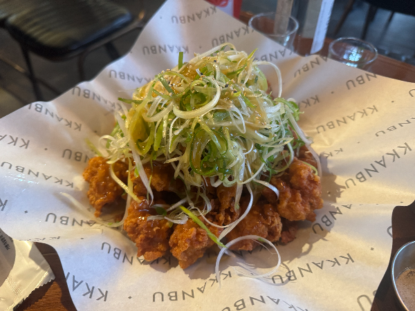 생맥주 3잔, 파닭 순살, 프라이드치킨 반반을 주문했습니다.